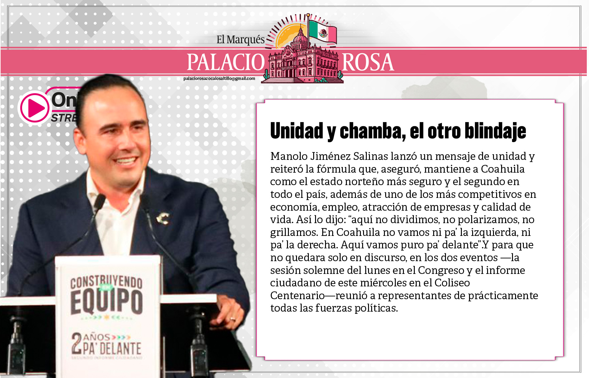 El alcalde Jacobo Rodríguez presentó su primer informe de resultados ante la población de Piedras Negras ante un teatro de la ciudad lleno.
